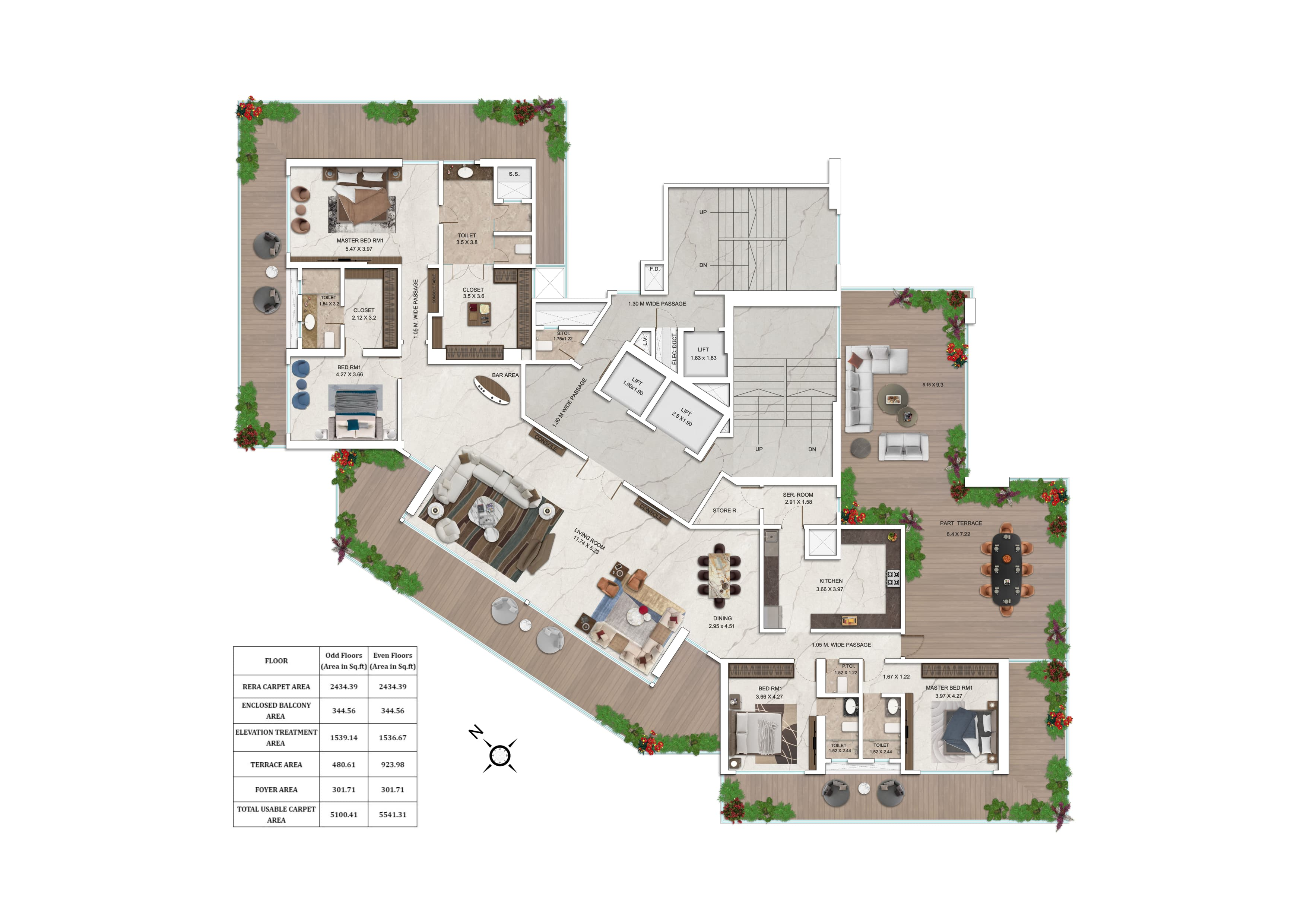 Property 3 BHK 3998Sq.ft Carpet area