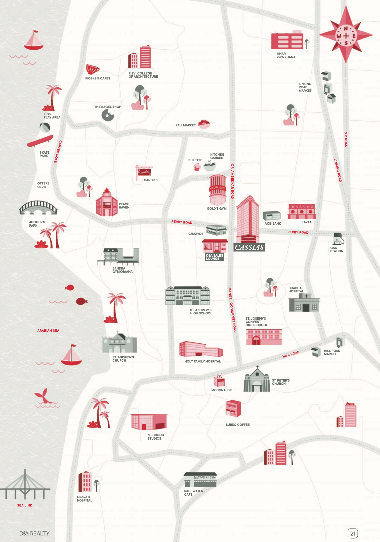 Cassias by D&A Realty is a luxurious complex located in the heart of Bandra West. The developer has done an excellent job in providing top-notch amenities like a gymnasium, health club, swimming pool, and more. The complex is equipped with high-speed elevators and a grand entrance lobby that adds to the luxurious feel of the place. The location of Cassias is perfect for those who want to experience the best of Bandra. The Manuel Gonsalves Road is a quiet and peaceful street, yet it is just a stone's throw away from the bustling Bandra market. The neighbourhood is vibrant and has a great nightlife scene, with plenty of bars and restaurants to choose from. Commuting is a breeze from Cassias, with easy access to both the Western and Eastern Express Highways. The Bandra railway station is also just a short distance away, making it easy to travel to other parts of the city. Overall, Cassias is an excellent choice for those looking for a luxurious and convenient lifestyle in the heart of Bandra. The only downside is that the complex is a bit pricey, but the amenities and location make it well worth the investment.