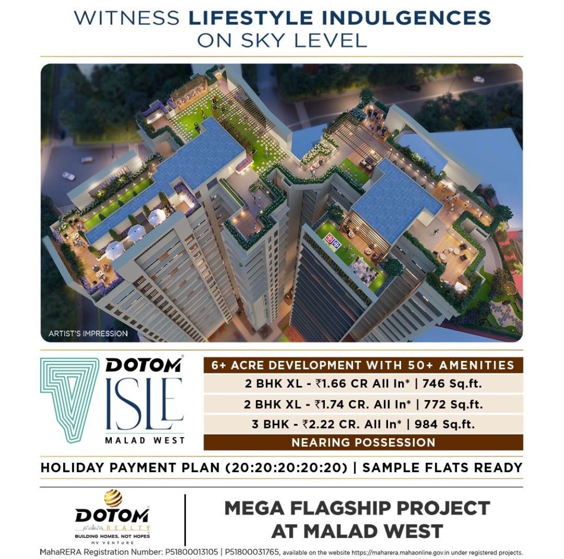 Dotom Realty empowers you to realize your real estate ambitions exactly the way you intended, no compromises. Built on strong foundation of integrity, transparency and an ability to deliver project on time. DOTOM project exhibits creativity and strength in equal measure, powered by expert in architecture, engineers, project management, on time regulatory approvals and construction technology. Dotom Realty ensure that your investments are utilized for maximum returns. Dotom realty is a well known and reputed face in the construction industry. It is a popular and a well established real estate developer in the vicinities of Mumbai. It has undertaken many residential projects in the areas of Borivali, Khar, Matunga and Vikhroli. Besides these, there are multiple other ongoing and upcoming residential projects that it aims to finish it in near future.